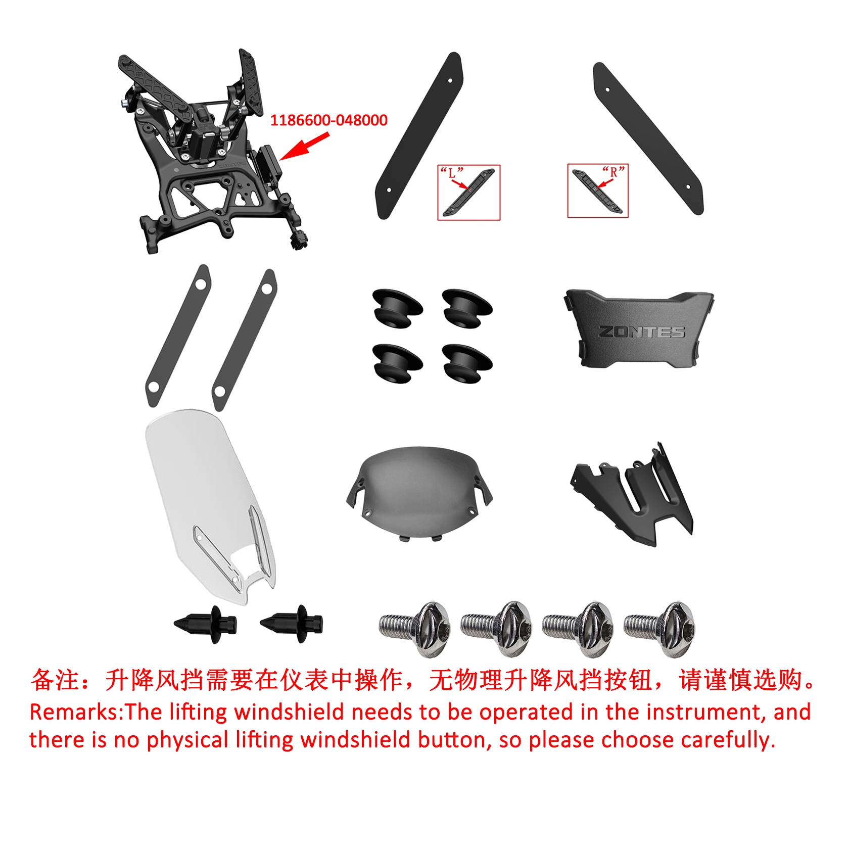 . ZT368T-M Electric Lifting Windshield Modification (High Version/Inner plum screw/Kit)